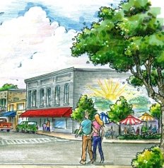 In addition to talk of an entertainment district, a beautiful street scape has been proposed for the Sweetwater area.  It would have brick sidewalks, leafy trees, and a lovely fountain as the centerpiece of a roundabout.  The cost of the street scape would be approximately $1.5 million, which is an investment that would have a big payoff as a catalyst for economic development and growth.
